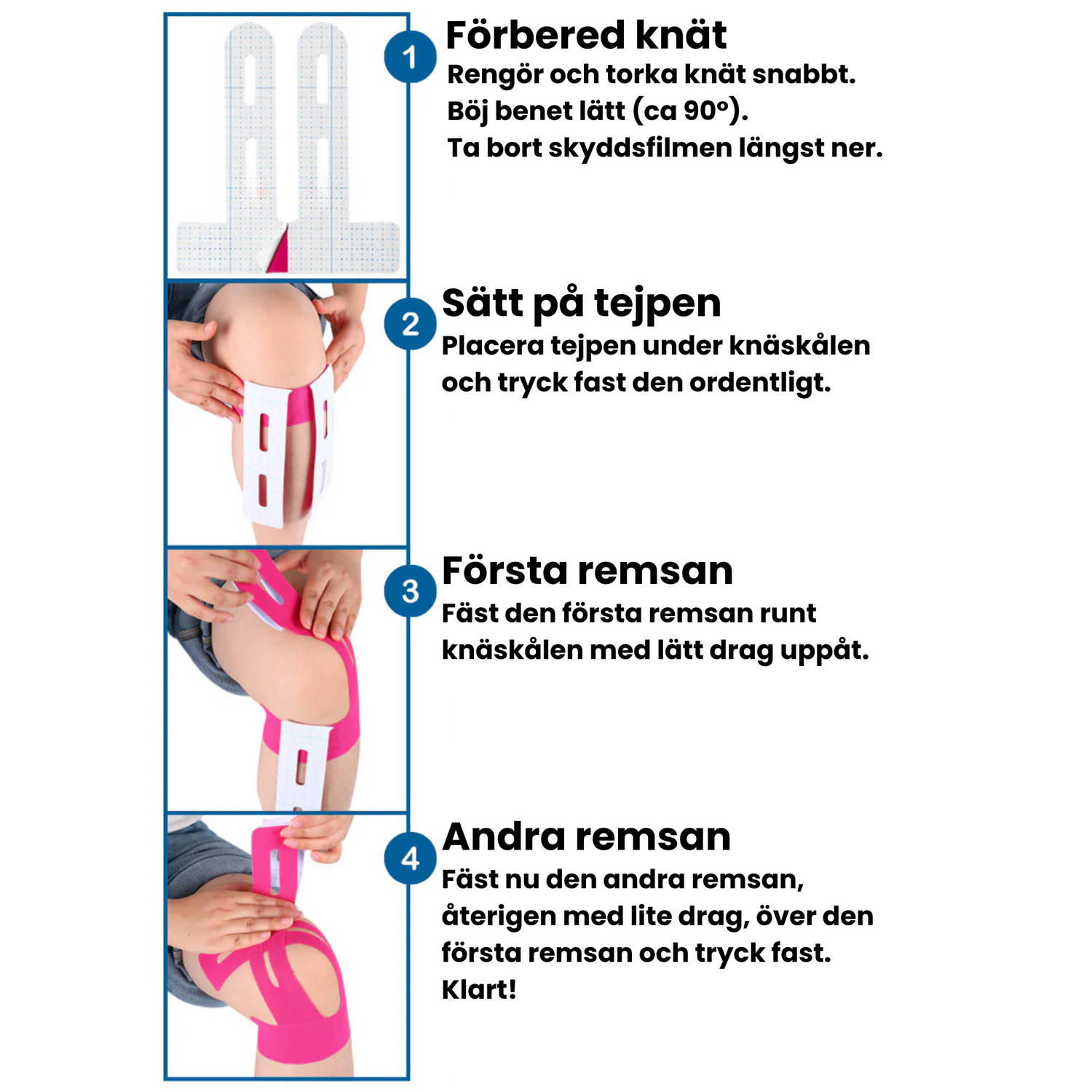 Känner du av ett svagt eller ömt knä? Med KnäGuard får du professionellt stöd på bara några sekunder – även om du aldrig tejpat ett knä förut.